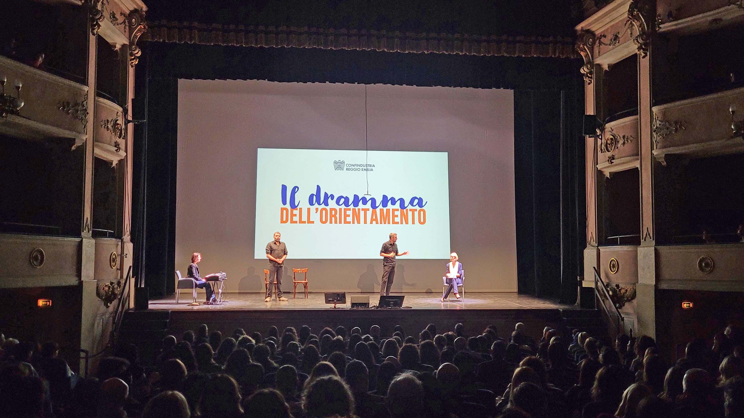 Il calendario di iniziative è stato inaugurato dallo spettacolo teatrale “Il Dramma dell’Orientamento”, in scena lunedì sera al Teatro Ariosto di Reggio Emilia e rivolto a genitori e insegnanti. Realizzato dalla compagnia Teatro Educativo, la rappresentazione ha alternato sketch ironici sulle dinamiche più comuni del processo di orientamento, in famiglia e a scuola, con momenti di analisi e riflessione tenuti da una psicologa, che ha offerto spunti utili per sostenere i ragazzi di terza media, quarta e quinta superiore nel momento della scelta.